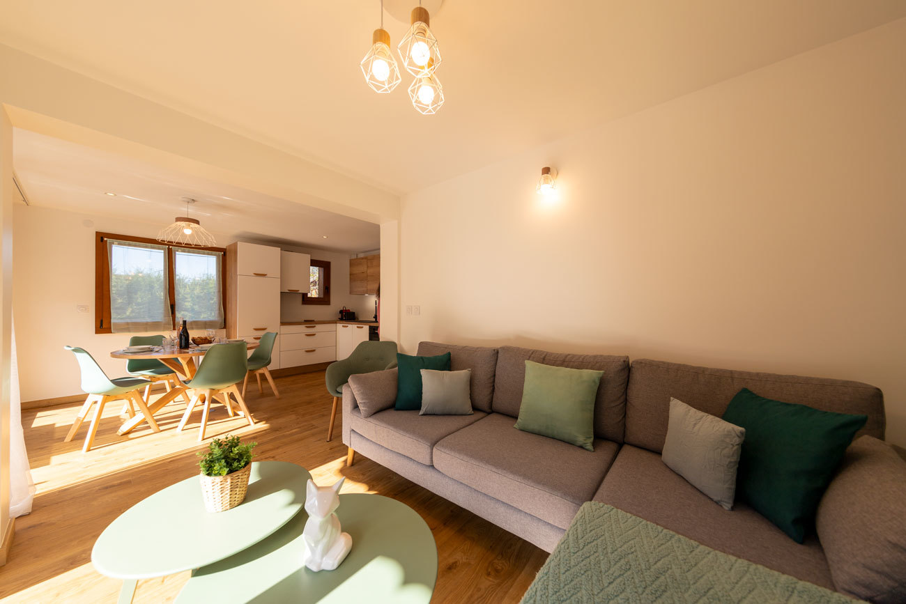 The apartment itself is lovely and modern with a bike/ski room downstairs. There is also a large garage. The bedrooms are a good size and the kitchen is well equipped.