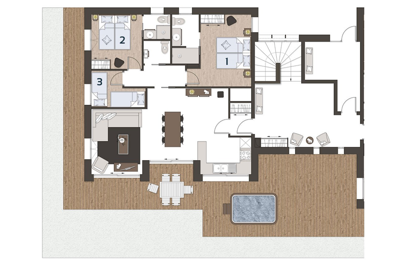 The customer service was excellent, right from the moment we booked the apartment to after having checked out. Staff were attentive and efficient, without being intrusive. The apartment was warm, beautifully decorated and furnished, with excellent facilities, including parking, ski equipment storage and drying, as well as a much-appreciated hot tub. The location was perfect; centrally located in the town with easy access to shops, bars, restaurants and ski lifts. We loved it so much that we've already booked for next year.
