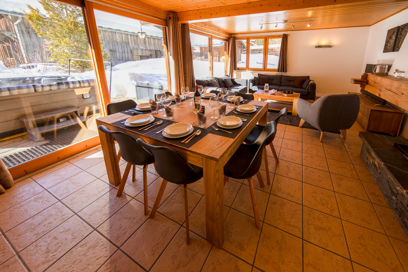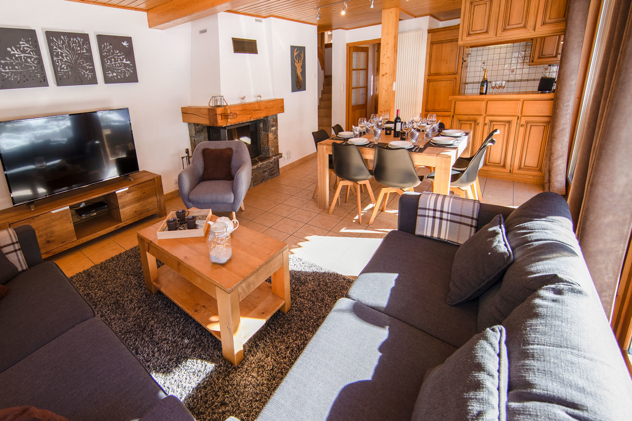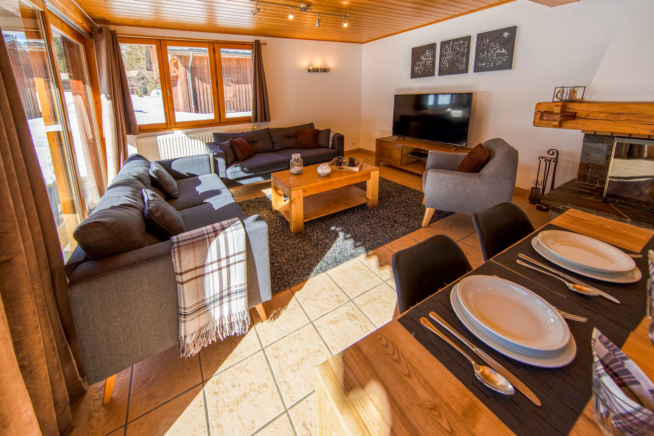 After a hard day on the mountain, Chalet Les Forclettes offers you a choice — do you and your family and friends sit on the large sunny terrace/garden, gazing out over the majestic mountain panorama? Or do you settle in to one of the cosy sofas, and pop some music on the Bluetooth speaker while you watch the flames from the real log fire dance and talk about the day’s adventures?