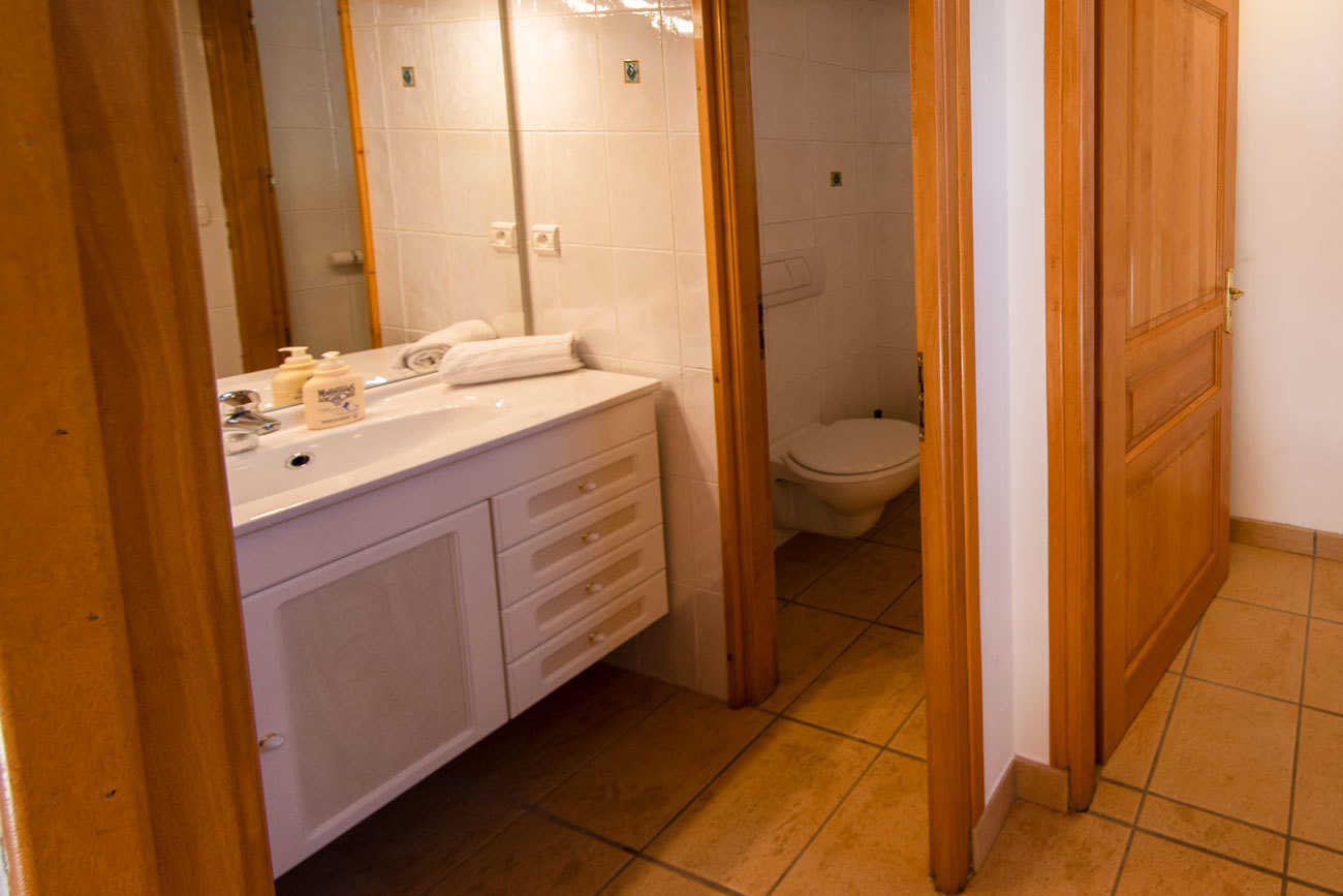 The three bedrooms have balconies and offer versatile sleeping arrangements that can be configured to suit your group’s needs. Bedroom one is a double room with a fixed double bed. The second is a triple room (that can be made up as either three single beds or a double and single bed) and the third bedrooms is a double room (that can be made up as either two single beds or a double bed).