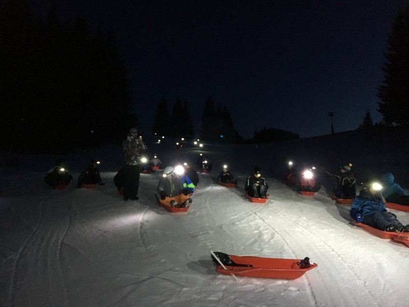 A la tombée de la nuit, quand les skieurs ont déserté les pistes, dévalez les pentes du Pleney équipé de luges et de lampes frontales. Commence alors une descente folle et vertigineuse à travers les 4 km de pistes boisées surplombant Morzine illuminé.