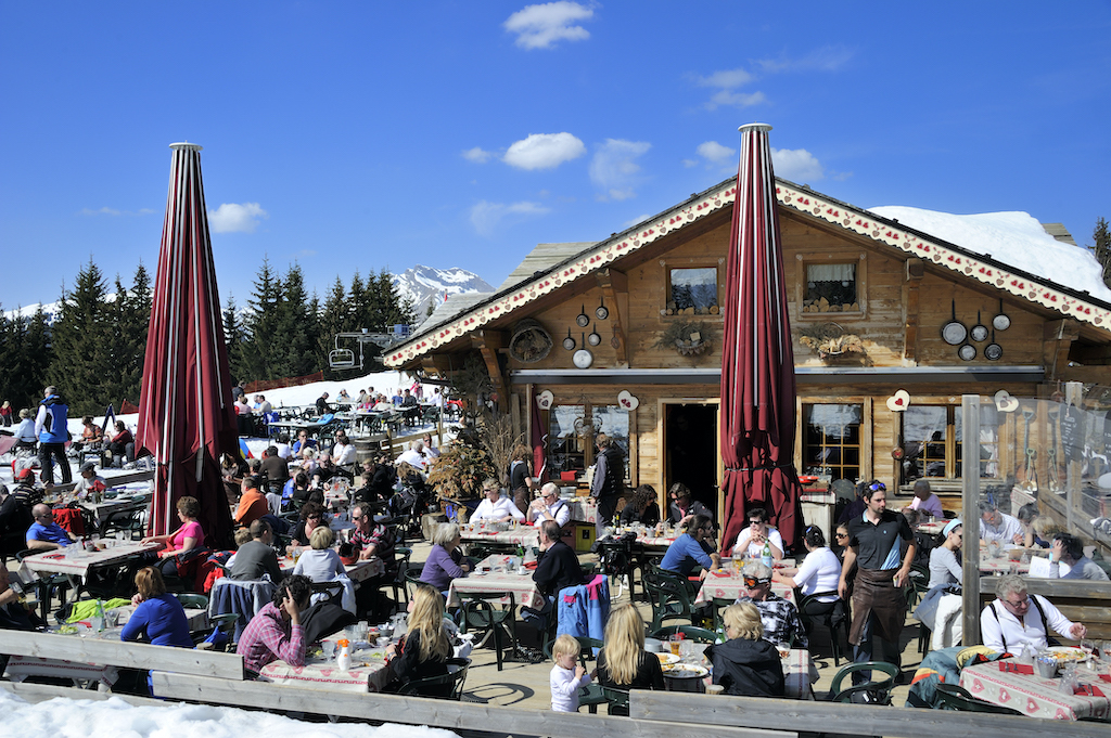 This chalet restaurant is located in a quiet spot at the top of Pleney gondola, next to the top of the Belvedere chairlift.