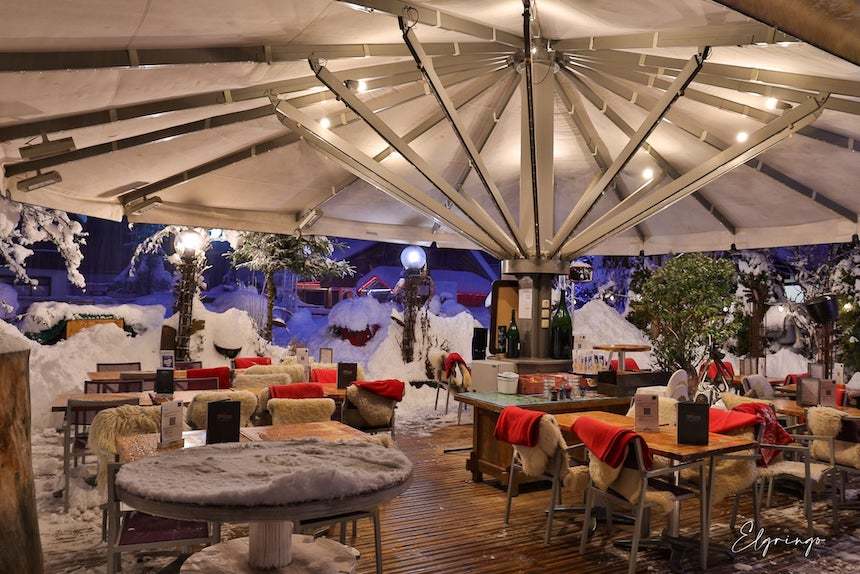 Le Crépu is a classic ski bar, complete with a fully wooden interior for those “chalet vibes”. It was completely renovated in 2019, sprucing up the interior and expanding their outdoor terrace to provide even more table space.
